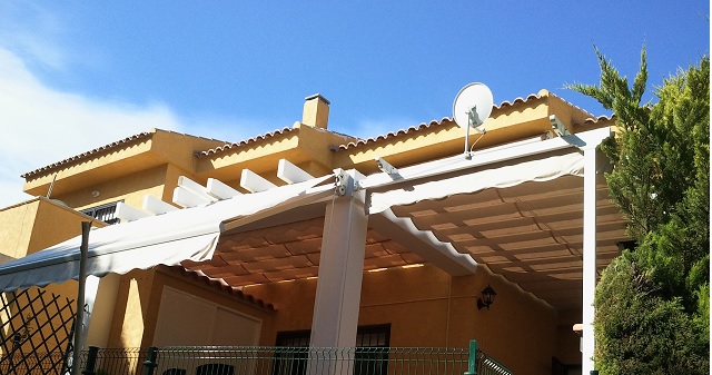 Aquí podrán ver una pequeña galería de nuestros trabajos por categorías, por ejemplo aqui tenemos un trabajo realizado en Calpe (Alicante), en el que se pueden observar dos pérgolas y un toldo extensible o articulado que es el que ilustra nuestra cabecera de página web.