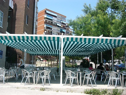 Cafetería cervecería “Portu”, Fuenlabrada, más adelante añadimos cerramientos laterales a la estructura.